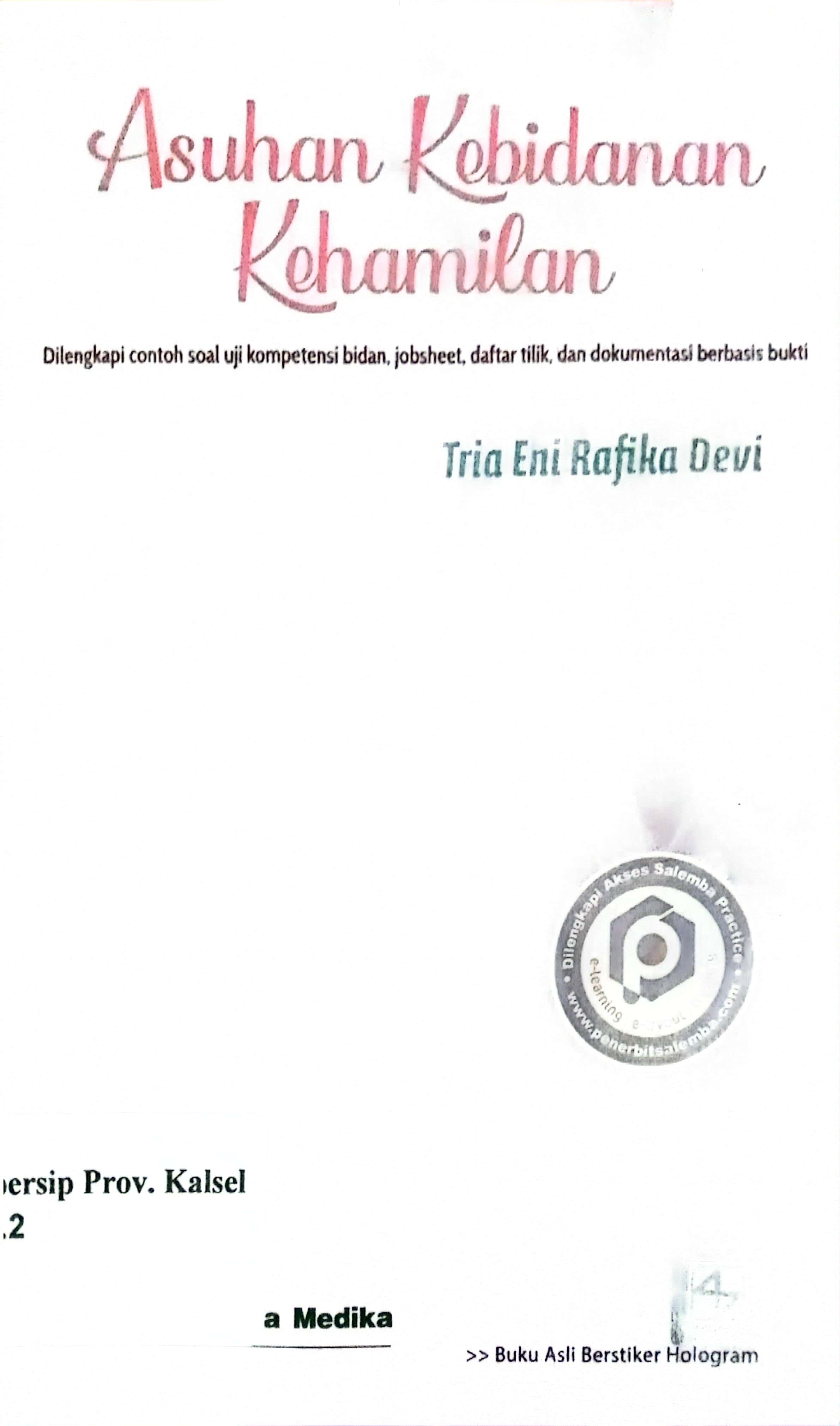 | Judul | Asuhan Kebidanan Kehamilan : Dilengkapi Contoh uji soal kompetensi bidan, jobsheet, daftar tilik dan dokumentasi berbasis bukti |